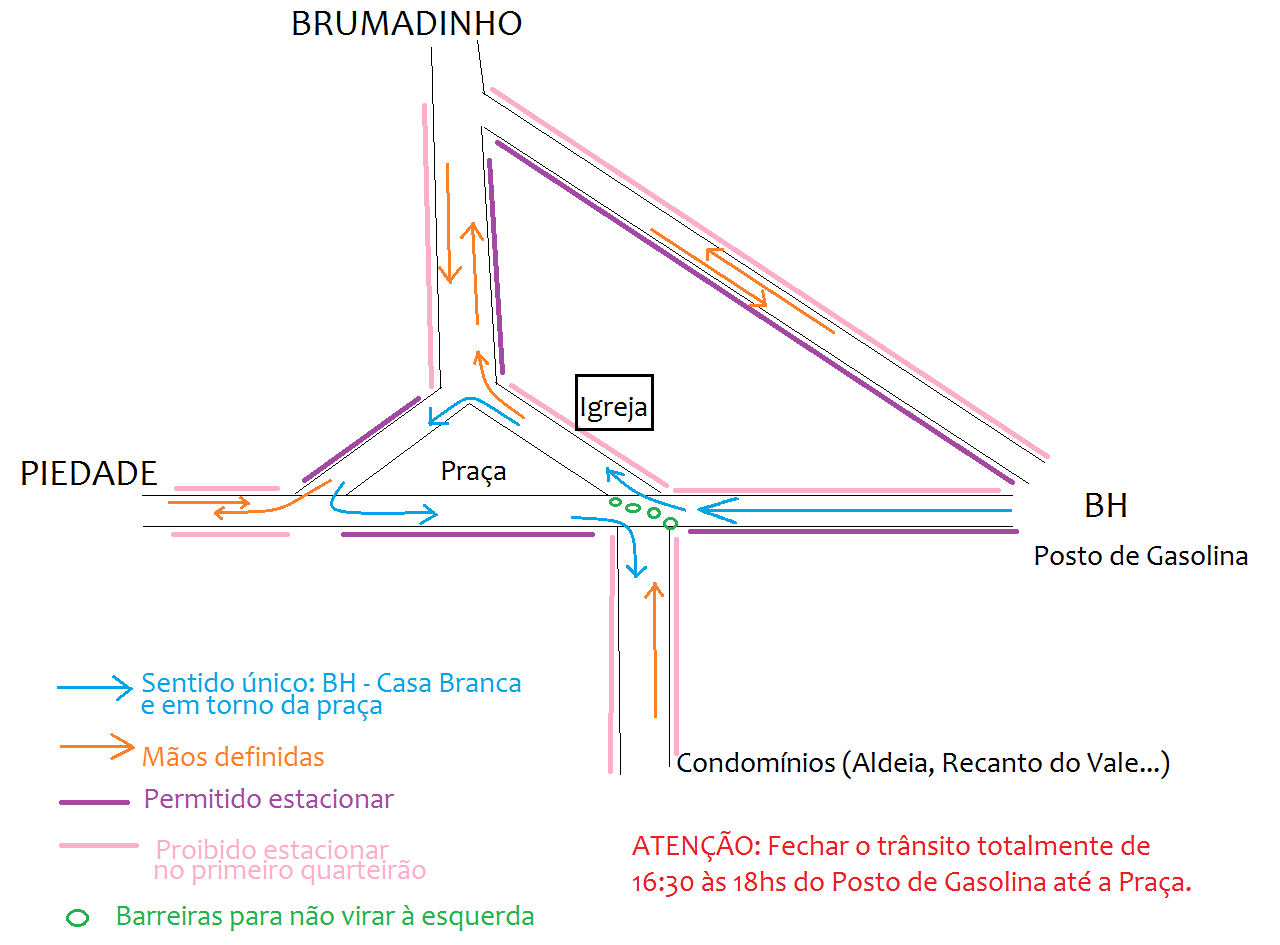 Após discussão das melhores opções para a reestruturação do trânsito no carnaval, o acordo feito ficou de acordo com o mapa abaixo: