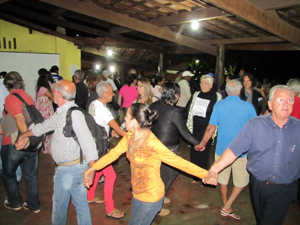 A reunião foi iniciada com uma grande roda com todos os participantes cantando a música: “Estamos aqui, Juntos de mãos dadas, Cantando a canção, A canção do coração, Essa é a família, Essa é a unidade, Essa é a celebração, Isso é sagrado...”