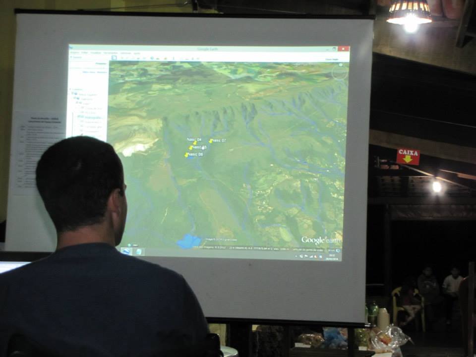 José Felipe apresentou um mapa mostrando onde estão as nascentes que nos abastecem e onde foram perfurados os furos de sondagem, local onde imaginamos que pretendem instalar a mina.
