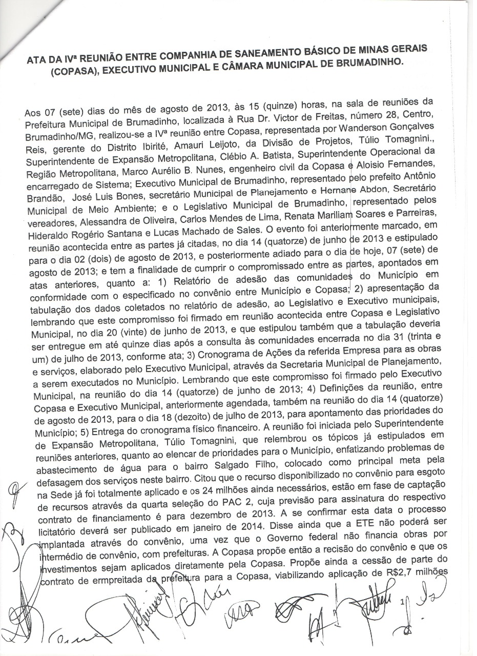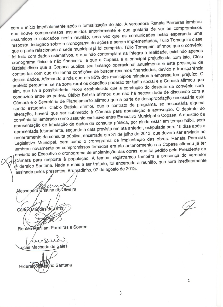 REUNIÃO COM A COPASA, EXECUTIVO E LEGISLATIVO MUNICIPAL - 07/08/2013 ÀS 15:00